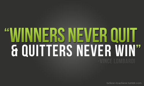 “Winners never quit & quitters never win”. Een vergelijkbare is ‘je kunt niet falen, tenzij je opgeeft’. Dit vind ik een hele mooie en ook een motiverende quote. En helemaal waar, winnaars haken niet af, want als je afhaakt zul je niet winnen. Hij past bij me, ik ben wel een doorzetter. Als ik iets graag wil dan ga ik daar voor en wil ik niet opgeven. Al gaat het misschien niet zo snel als ik zou willen, of niet op de manier die ik in gedachten had, ik weet dat ik er uiteindelijk wel ga komen.