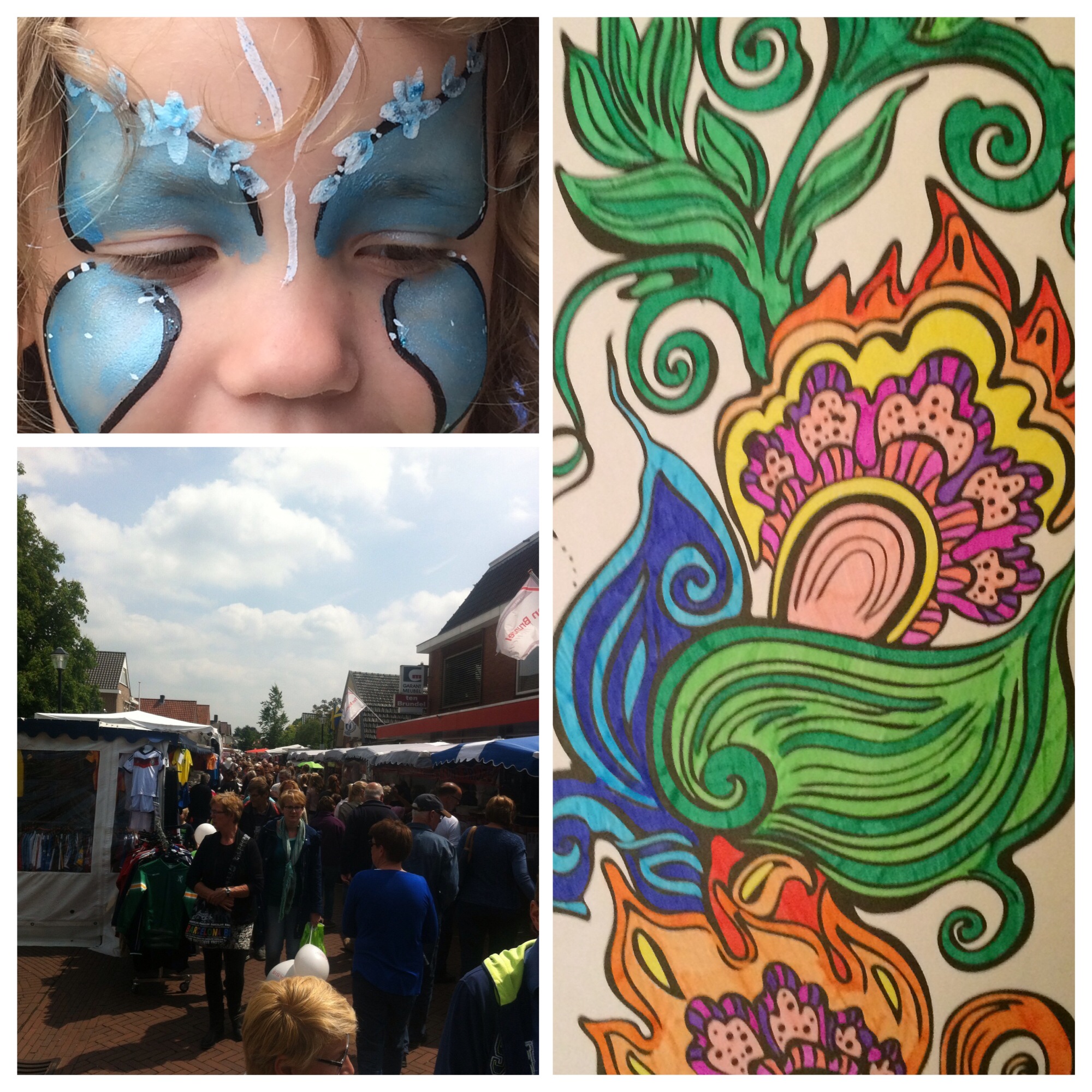 Werken dus, en ik ben een dag naar een jaarmarkt geweest om te schminken. We zijn nog een avond naar de kermis geweest en we vierden Lief’s verjaardag. En ik maakte weer eens een kleurplaat.