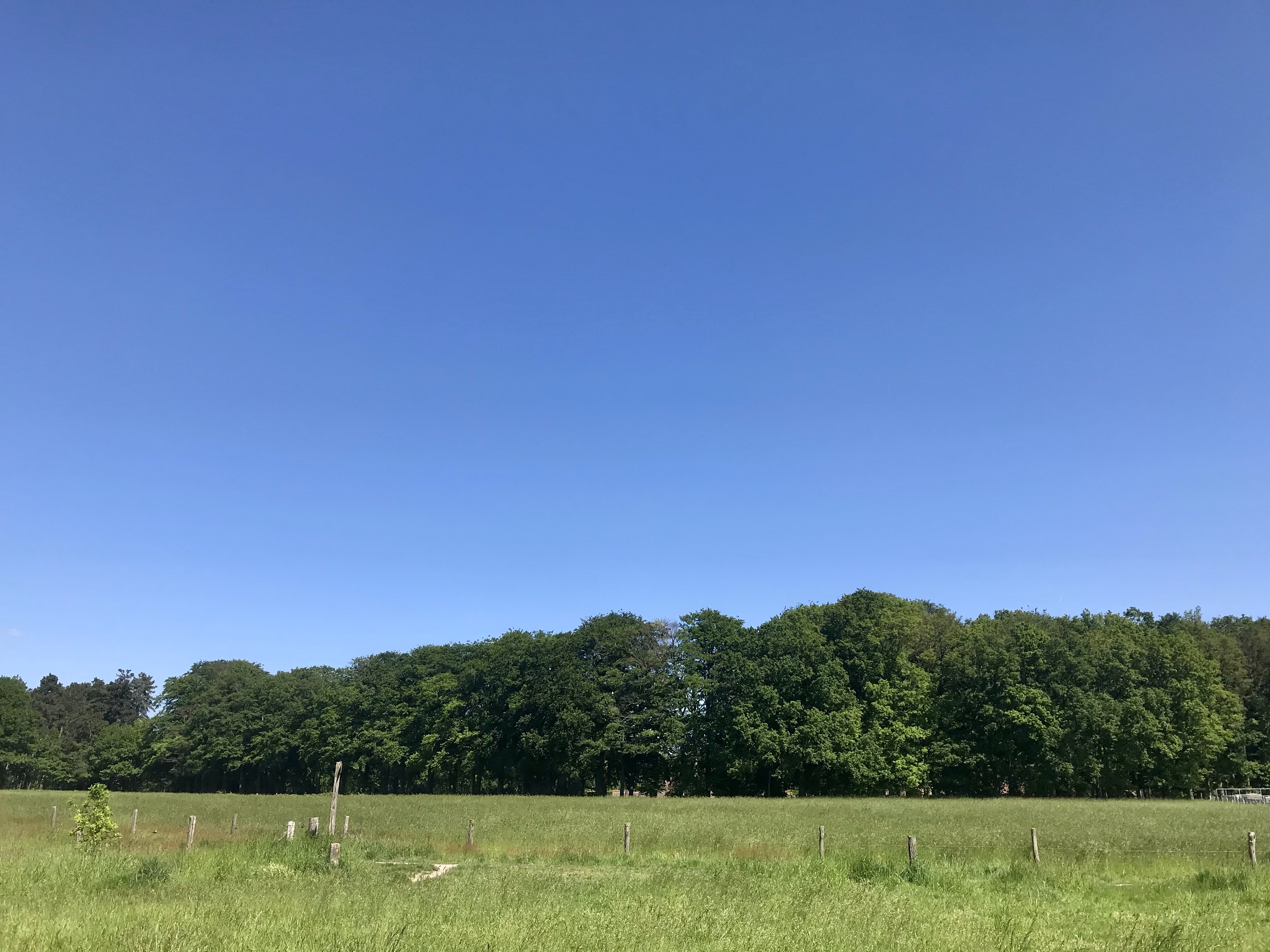 Als we hier met een groepje en verschillende honden lopen dan gaan we meestal even langs dit open veld. De honden kunnen hier lekker uitrazen. Vanaf daar kun je via het bos weer naar de parkeerplaats, of je neemt de korte route via het pad door het veld. Dat laatste is erg warm in de volle zon, en persoonlijk vind ik het bos mooier.