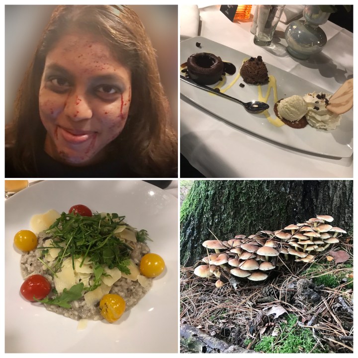We gingen een avond uit eten voor de verjaardag van de schoonoma, ik at er een lekkere herfstachtige risotto met paddenstoelen, en een machtig toetje met ontzettend veel chocola. Heerlijk was het.