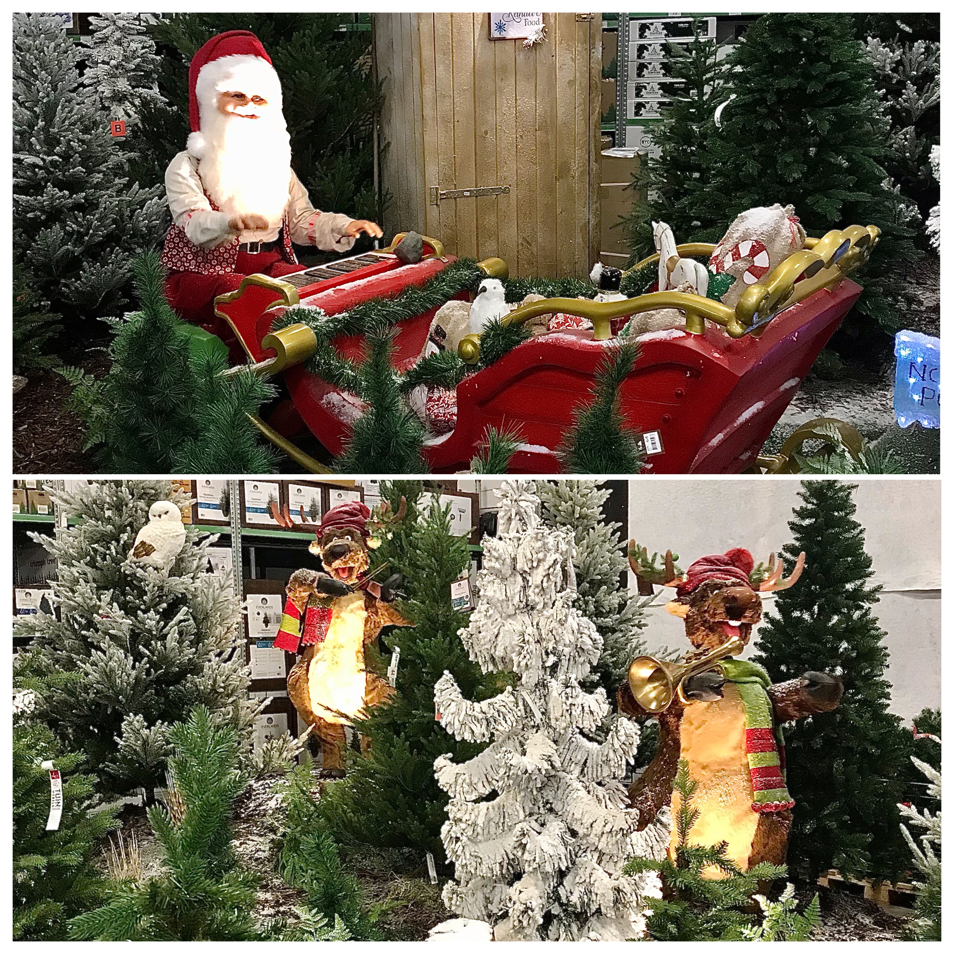 Aan het begin van de kerstshow werden we traditioneel begroet door de kerstman en zijn muzikale rendieren. De rendieren stonden niet aan, maar volgens mij kunnen ze ook geluid maken. Tussen alle kunstkerstbomen, die je uiteraard kunt kopen.
