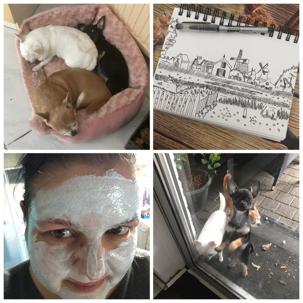Het stormde natuurlijk een weekend, het regende veel, maar er waren ook dagen met mooi weer. Ik heb zelfs even met mijn boek in de zon gezeten. Ik heb veel getekend en geknutseld, maar natuurlijk ook gewerkt. We gingen eindelijk weer een dag naar de sauna. En ik slaagde voor mijn examens en ben nu officieel pedicure.