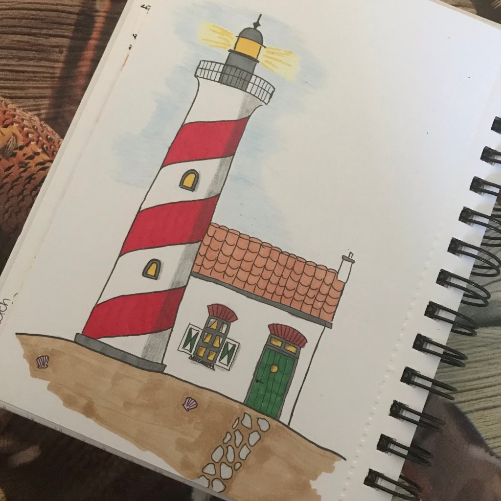 Die vuurtoren is wel erg mooi. Kan zo aan de muur in een lijstje! Je stijl begint echt vorm te krijgen. Ik denk dat je nog wel door-experimenteerd en groeit, maar … er is een herkenbare stijl aan het ontstaan. Helemaal jouw eigen ding!