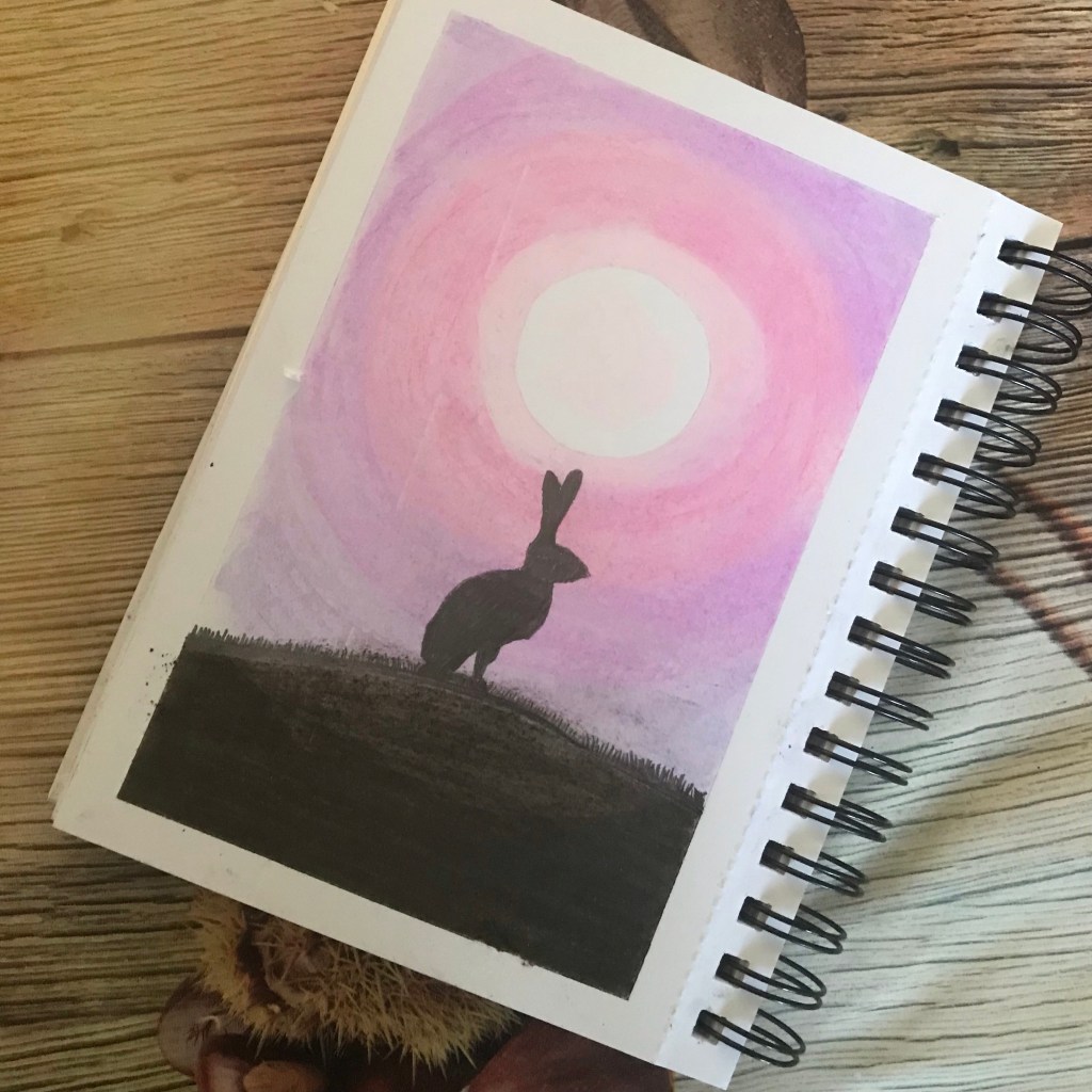 Voor een dierenchallenge maakte ik dit schattige haasje met oliepastels en grafietpotlood.
