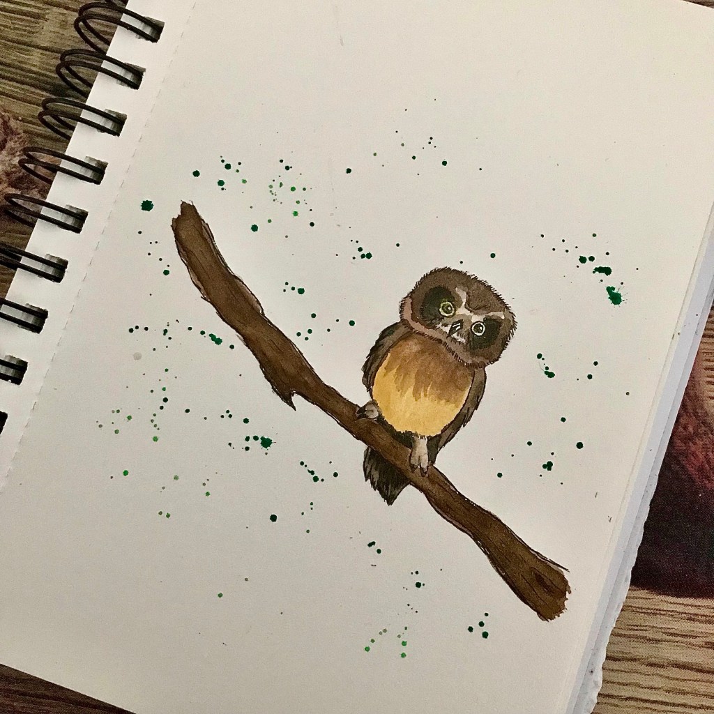 De volgende opdracht van diezelfde dierenchallenge was ‘kuiken’, en omdat ik niet hetzelfde wilde maken als de meesten koos ik voor een uilskuiken. Gemaakt met fineliner en waterverf.