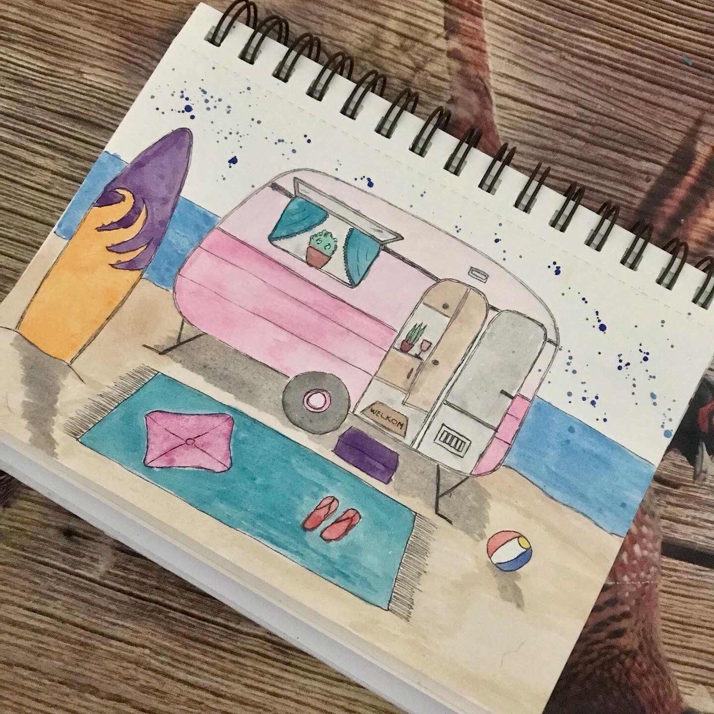 Het schattige caravannetje was één van de wekelijkse huisportretjes van Carla Kamphuis. Ik doe niet aan alle challenges mee die er zijn, dat is niet te doen, maar deze caravan zag ik meteen voor me op een strandje. Heerlijk lijkt me dat, zo’n vakantie.