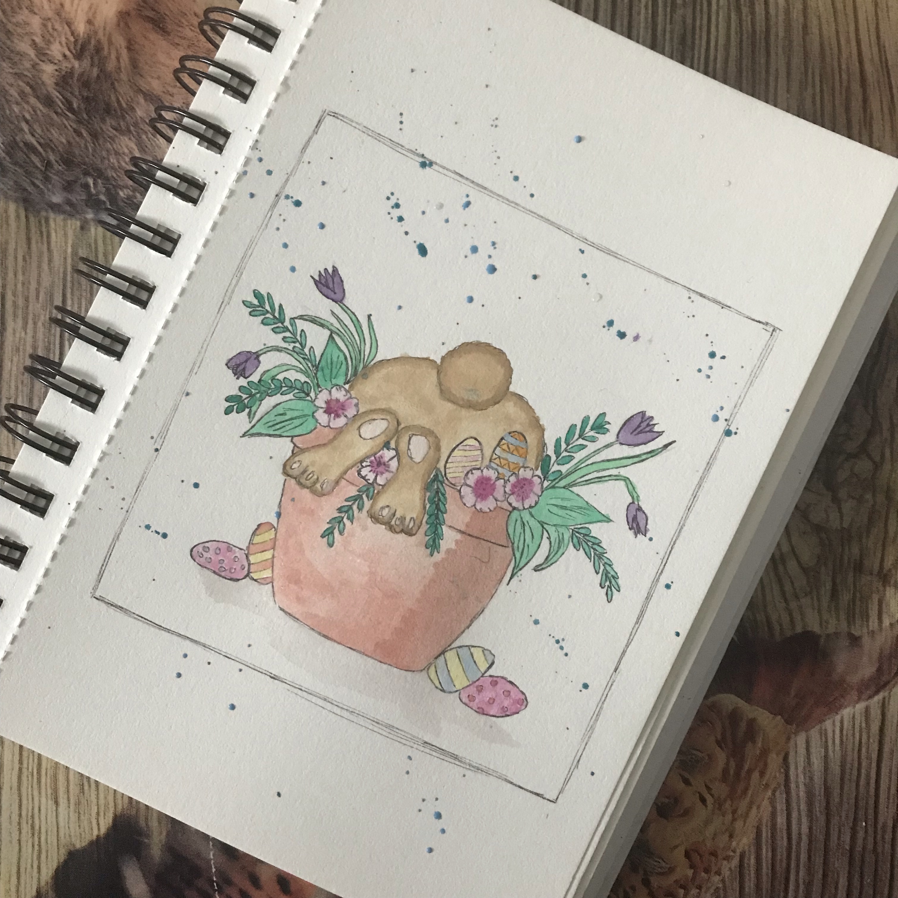 En natuurlijk kan een paastekening ook niet ontbreken. De konijnenkont maakte ik aan de hand van een live van Lian. Lekker vrolijk met de bloemetjes en de paaseitjes.