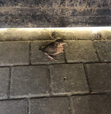 Gelukkig ging het helemaal goed en vond hij een uitgang. Ik heb hem wel even over het hekje geholpen zodat hij terug kon richting het nest.