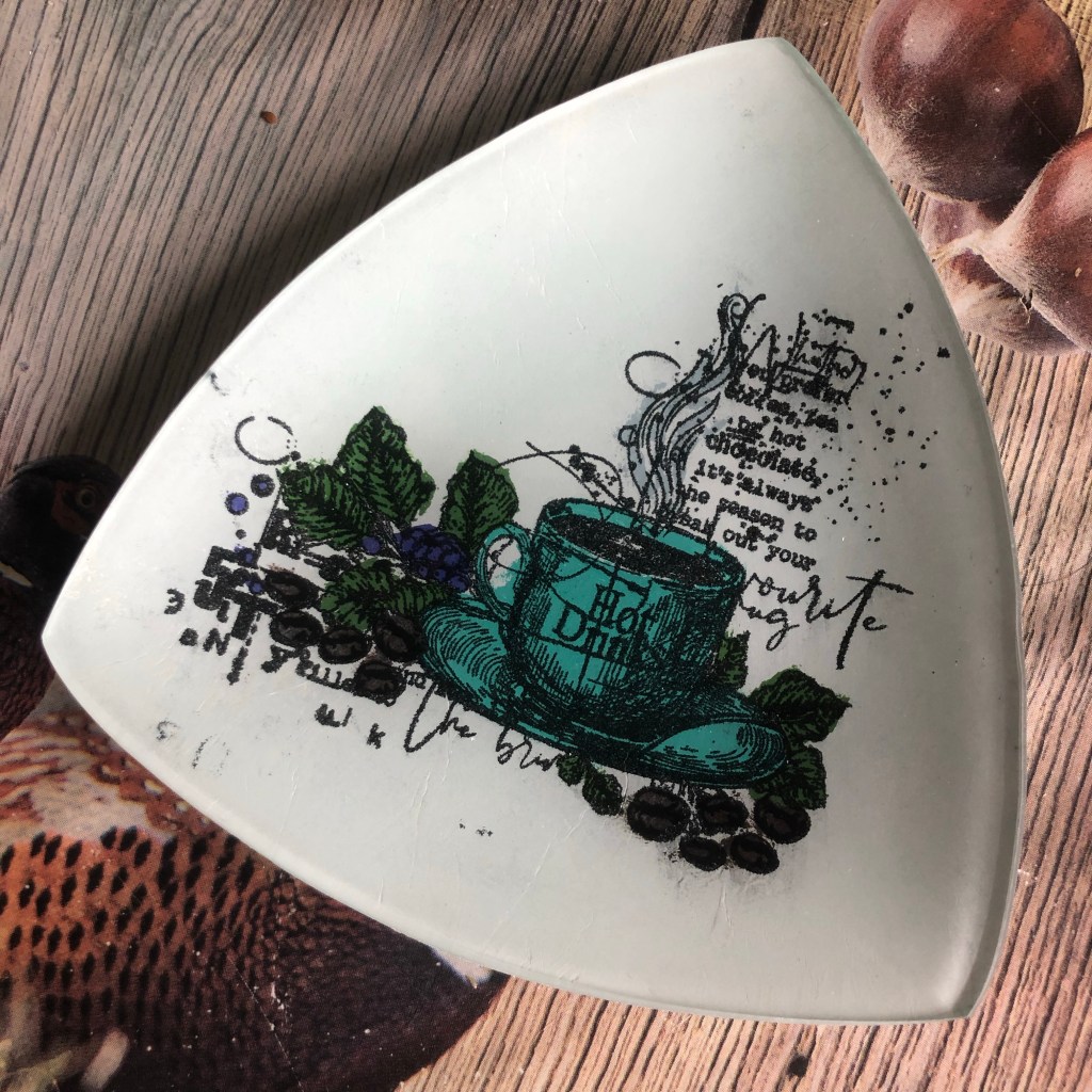 De tweede workshop volgde ik bij HandySis. Hier decoreerde ik een glazen schaaltje met decoupage en verf. We stempelden een afbeelding op rijstpapier, plakten dit op het schaaltje en kleurden het in met verf. Het klinkt een stuk simpeler dan het is, we waren best een tijdje bezig om het zo mooi mogelijk te maken. Ik ben wel tevreden over het resultaat.
