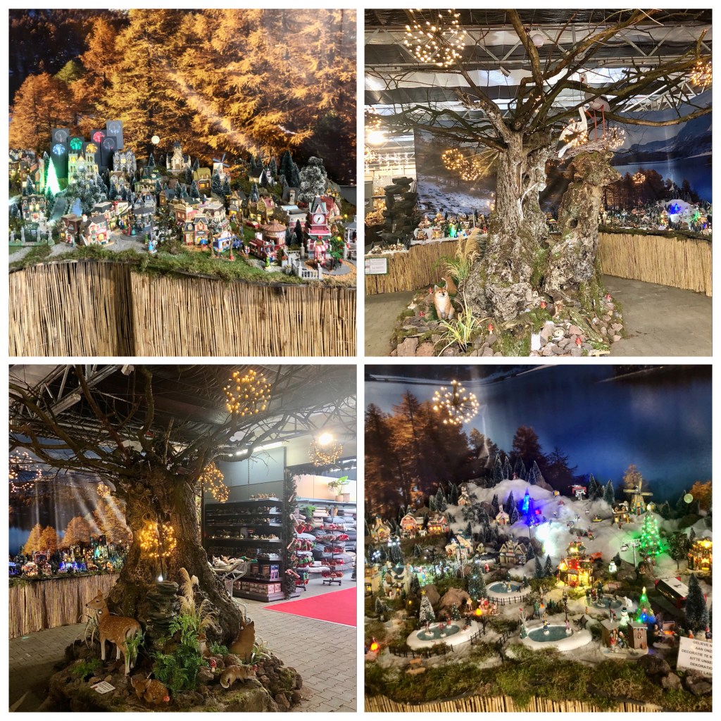 Bij de meeste tuincentra staat het kerstdorp op één of meerdere ‘eilanden’ en kun je er omheen lopen. Hier was dat niet zo, het dorp was tegen een wand aan gebouwd, en zo konden ze gebruik maken van een mooie achtergrond. Dat heeft ook wel wat vind ik. In het midden stond een mooie boom met beestjes.