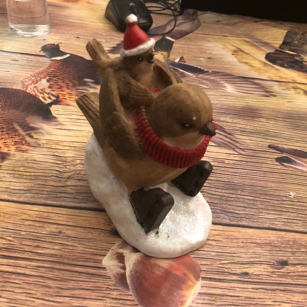 Wat we wel meenamen was dit schattige vogeltje uit de kortingshoek. Veel van de dingen die daar laten hadden wat schade, er miste een adapter, één van de kerstballen in de verpakking was gebroken, of het hert miste een stuk van het gewei, maar met deze was niks aan de hand.