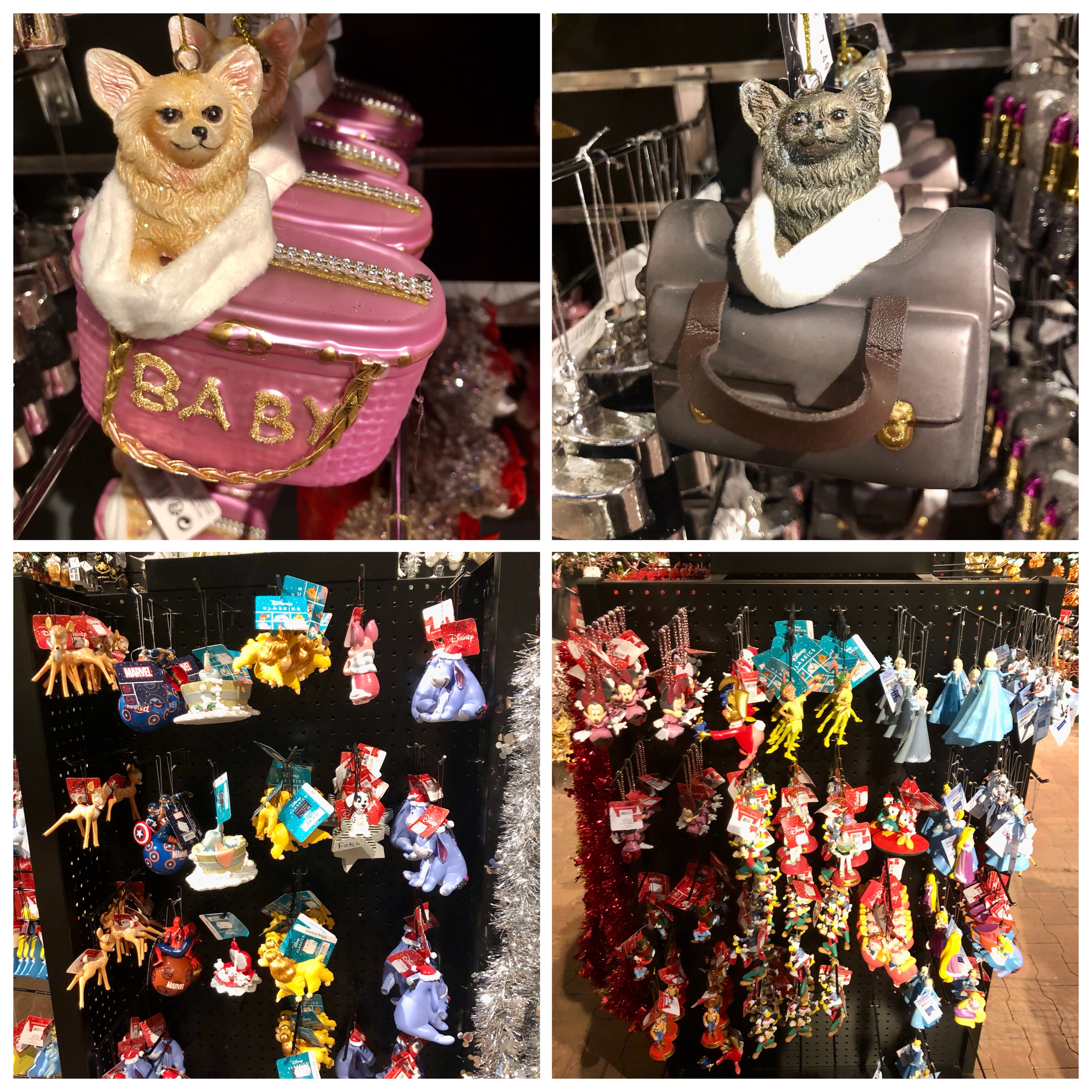 En ze hadden hier chihuahua- en Disneykerstballen! Superleuk, maar wel erg prijzig. Ik heb ze dan ook netjes laten hangen, maar ik heb wel even getwijfeld.