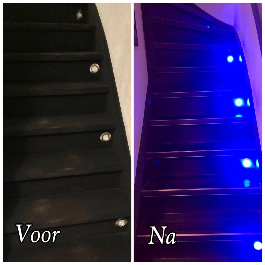 We waren al een tijdje niet meer zo tevreden met onze trapbekleding. het was nogal versleten en oogde gewoon niet zo netjes meer. Ook de lampjes die we hadden werkten niet meer helemaal naar behoren. Tijd om daar iets aan te doen. Van begin tot eind heeft het even geduurd, maar vorige week was het eindelijk af.