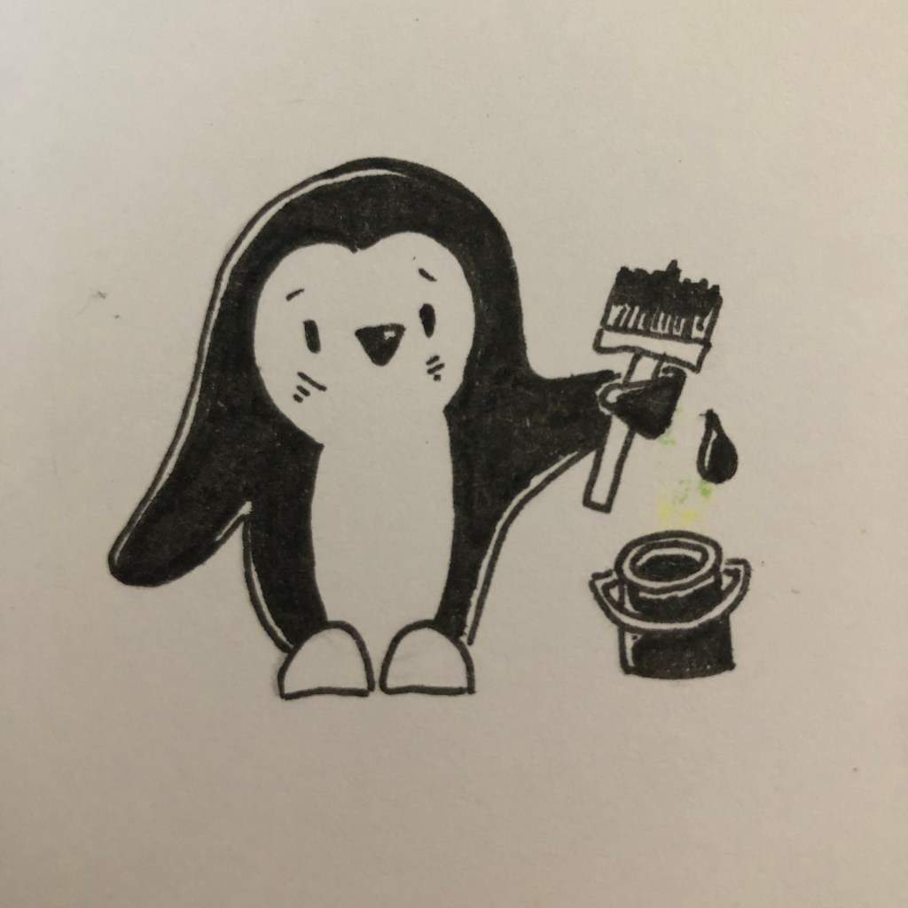 Deze schattige pinguïn tekende ik aan de hand van een filmpje van PaperFuel, volledig met fineliner. De groene en gele vlekjes komen door een andere tekening die helaas wat doorgedrukt was.