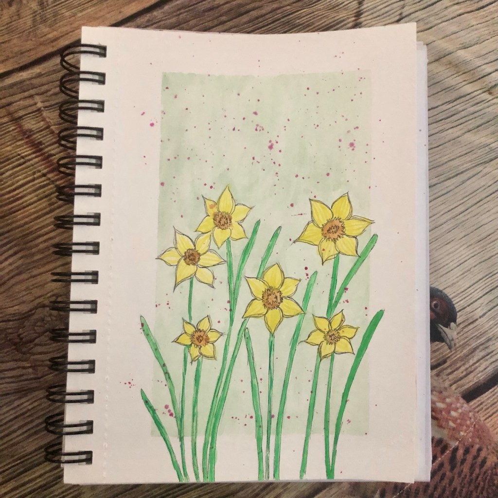 Narcissen passen natuurlijk heel goed bij de lente. Deze tekende ik aan de hand van een live van Carla Kamphuis, met fineliners en mijn nieuwe waterverf.