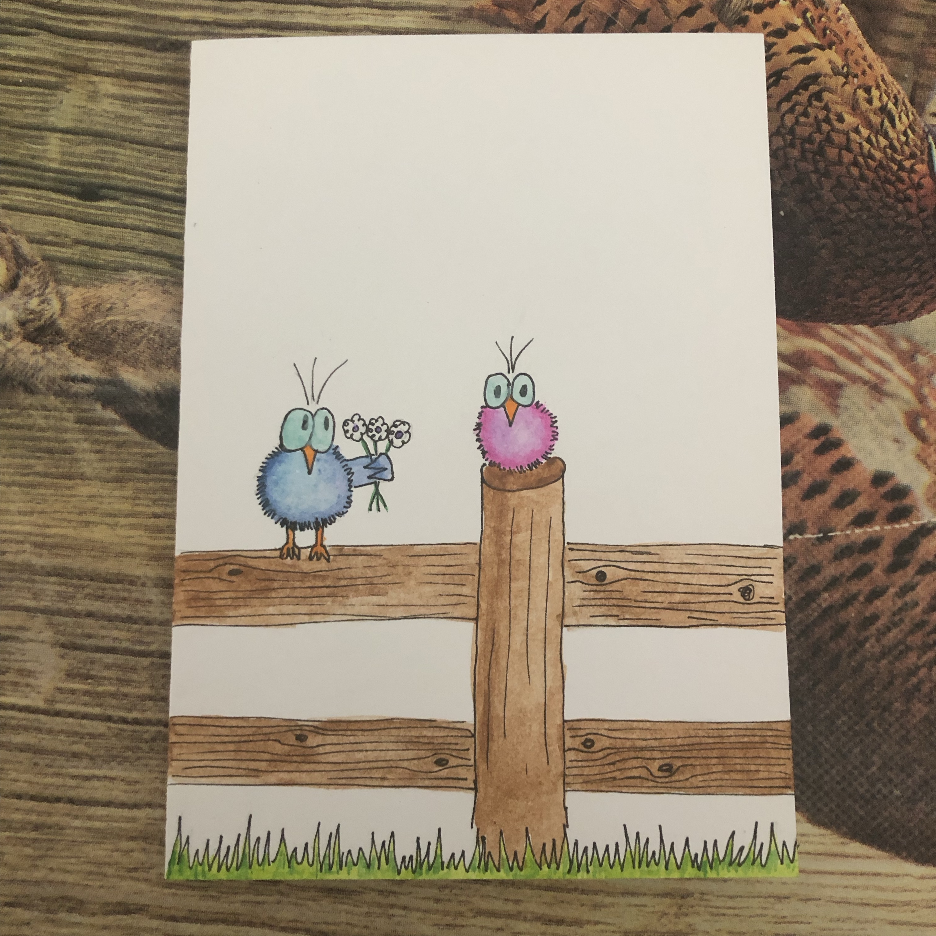 Tot slot tekende ik dit schattige kaartje voor een kaartjesswap, ook met fineliner en waterverf.