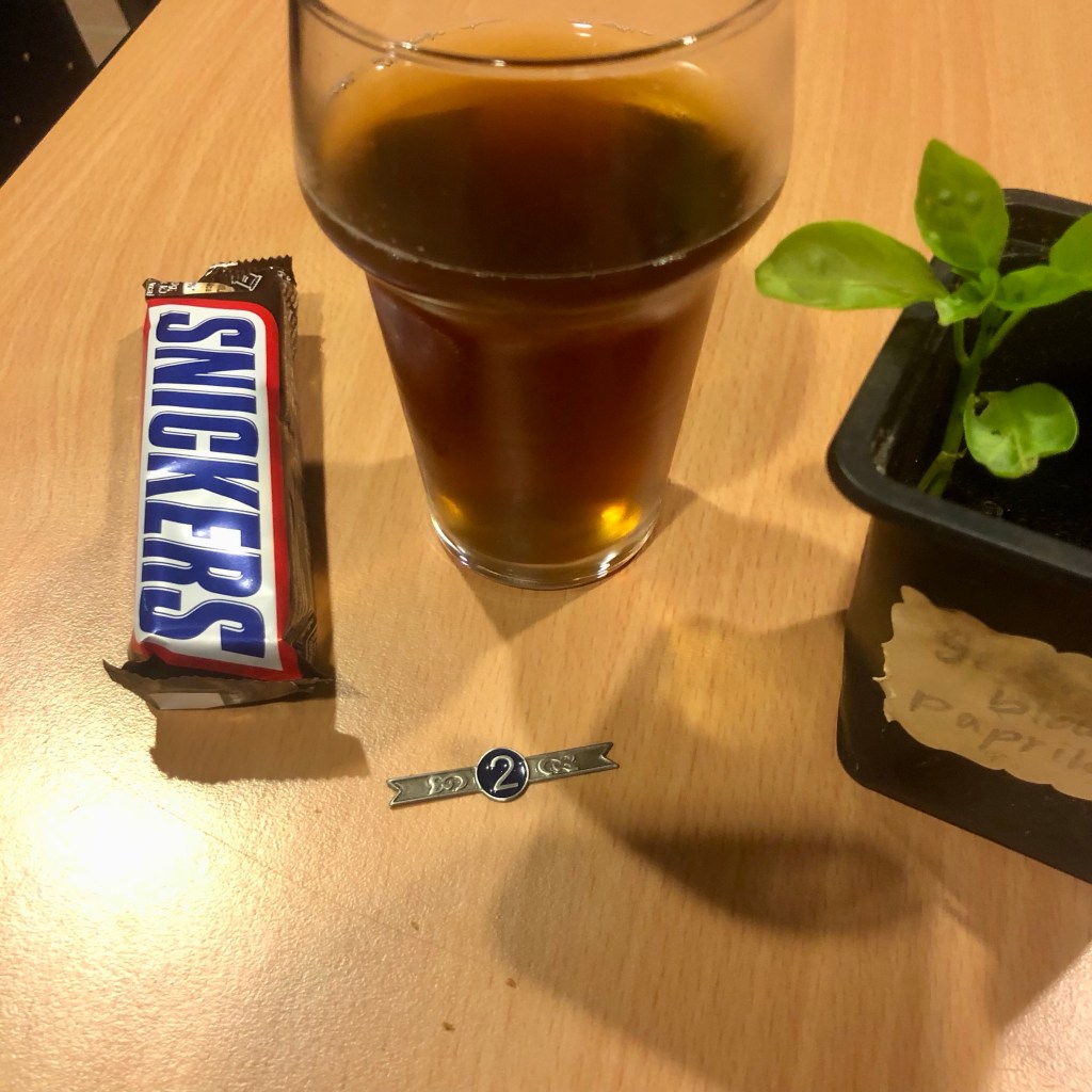 Na afloop even tot rust komen en afkoelen met een glas ijsthee en een snickers, daar was ik wel aan toe. Onderweg liep ik langs een plantenbieb waar onder andere een paprikaplantje stond. Die had ik nog niet in de tuin, dus ik nam hem mee, en hij heeft intussen een mooi plekje gekregen.