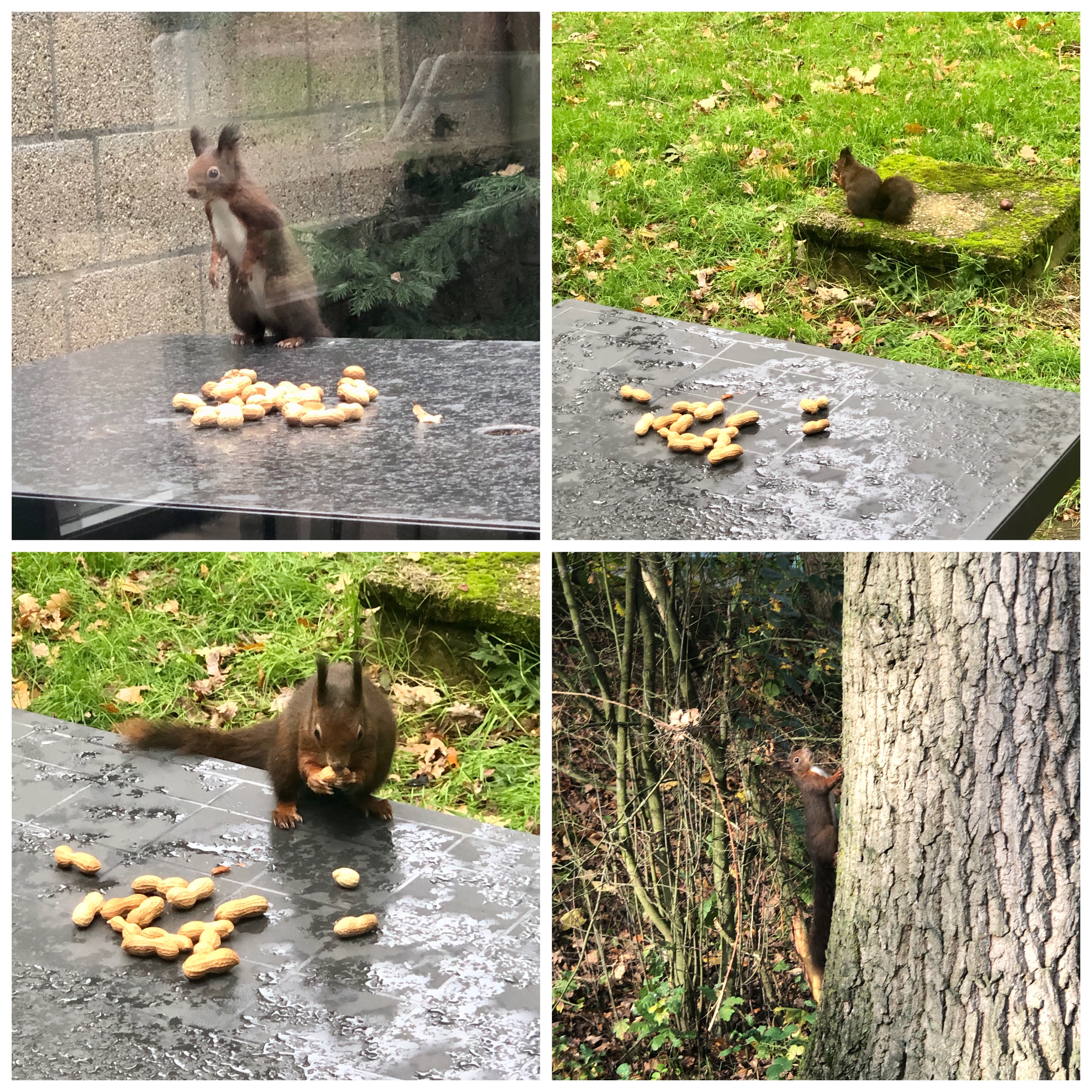 We nemen altijd een grote zak pinda’s mee voor de eekhoorntjes en de vogeltjes. In het begin moesten ze weer even aan ons wennen, maar met een beetje geduld kwamen ze steeds dichterbij en dat leverde een paar leuke plaatjes op.