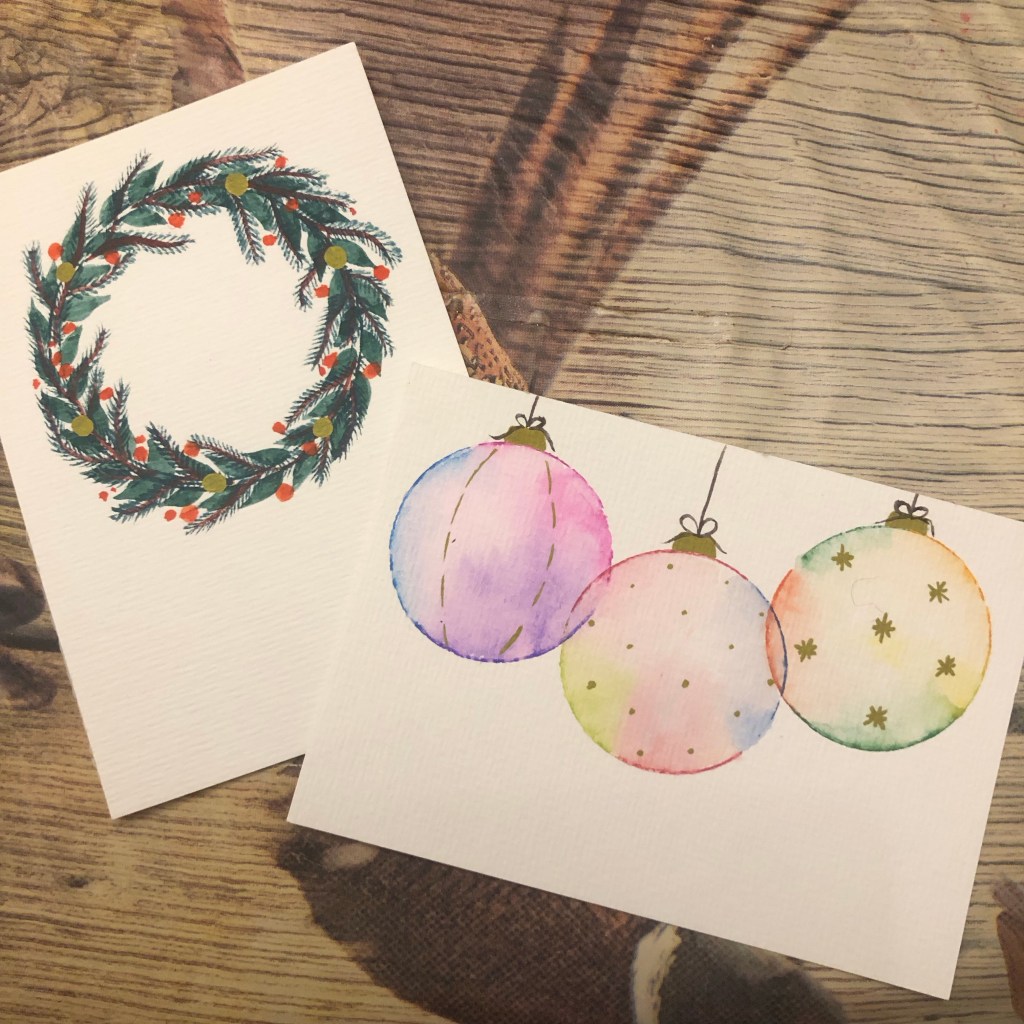 Als eerste mijn kerstkaartjes, die had ik eigenlijk al eerder gedeeld. Ik maakte tien kransen en tien kerstballen.