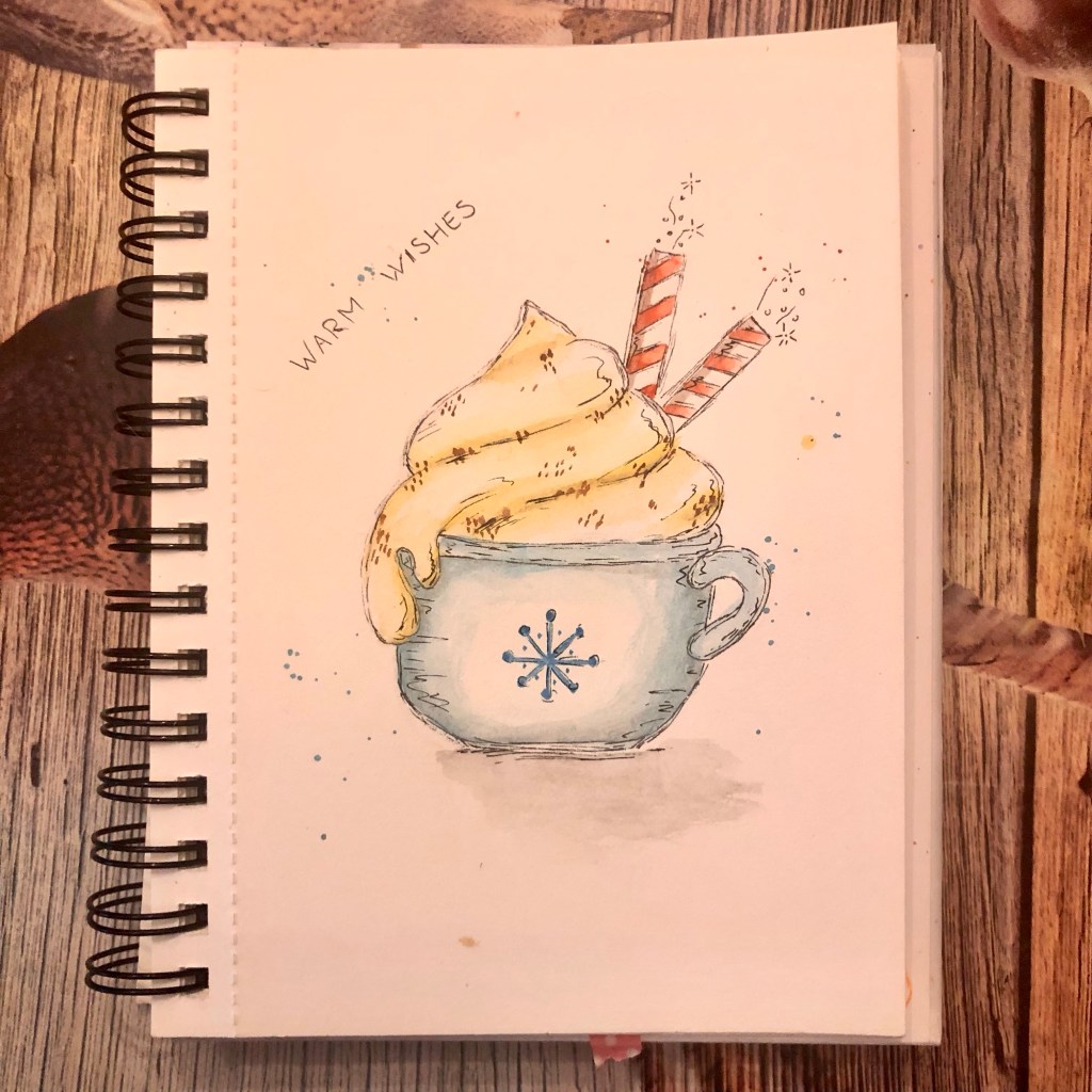 En tot slot maakte ik deze mok met lekkere warme chocolademelk met slagroom. Deze tekende ik aan de hand van een live van Karin Joan. Ik vind lives altijd leuk om te doen, je kunt ervan leren en je maakt zo nog eens iets wat je zelf misschien niet zo snel zou doen.