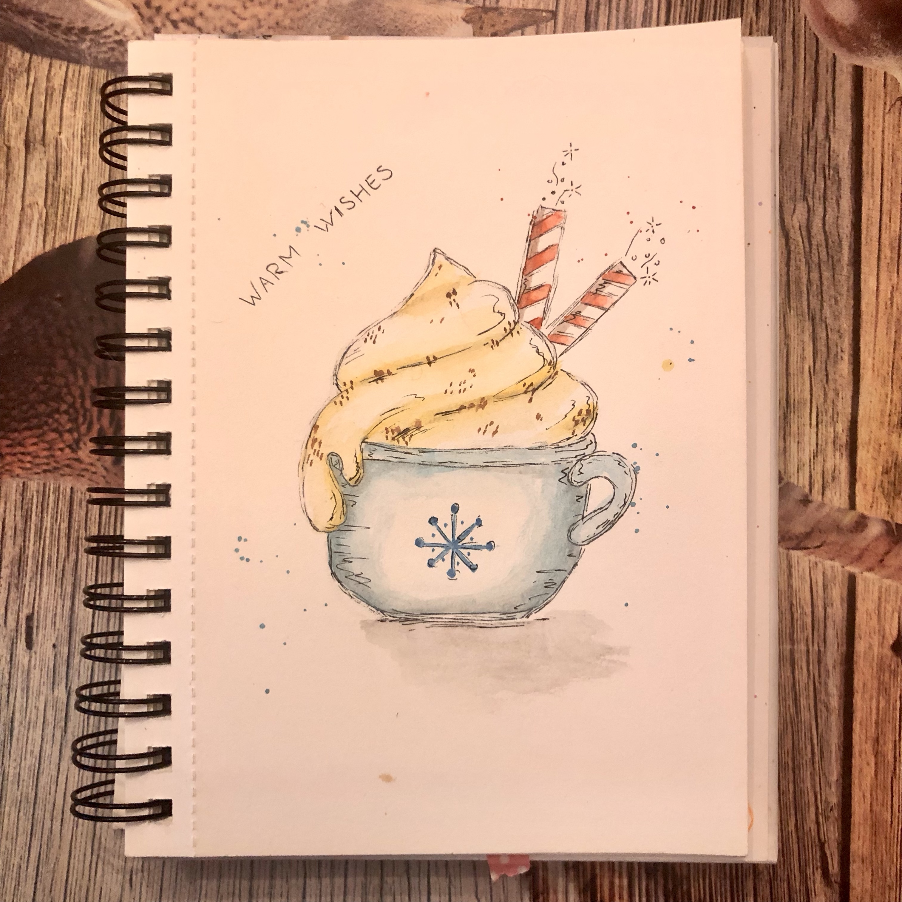 En tot slot maakte ik deze mok met lekkere warme chocolademelk met slagroom. Deze tekende ik aan de hand van een live van Karin Joan. Ik vind lives altijd leuk om te doen, je kunt ervan leren en je maakt zo nog eens iets wat je zelf misschien niet zo snel zou doen.