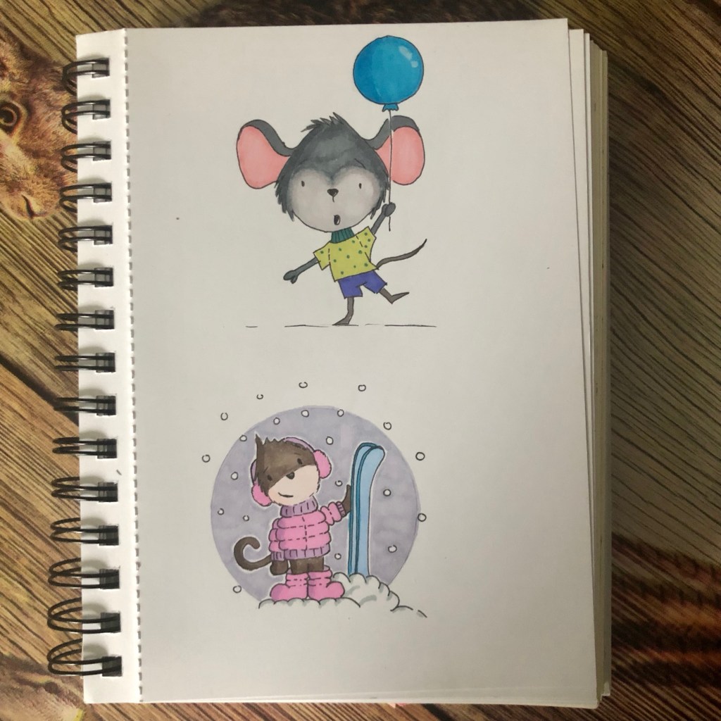 Ik deed ook mee met twee livesessies van Karin Luttenberg (PaperFuel). Een schattig muisje met een ballon en Mr. Cuddles op de lange latten. Beide zijn gemaakt met fineliner en twinmarkers.
