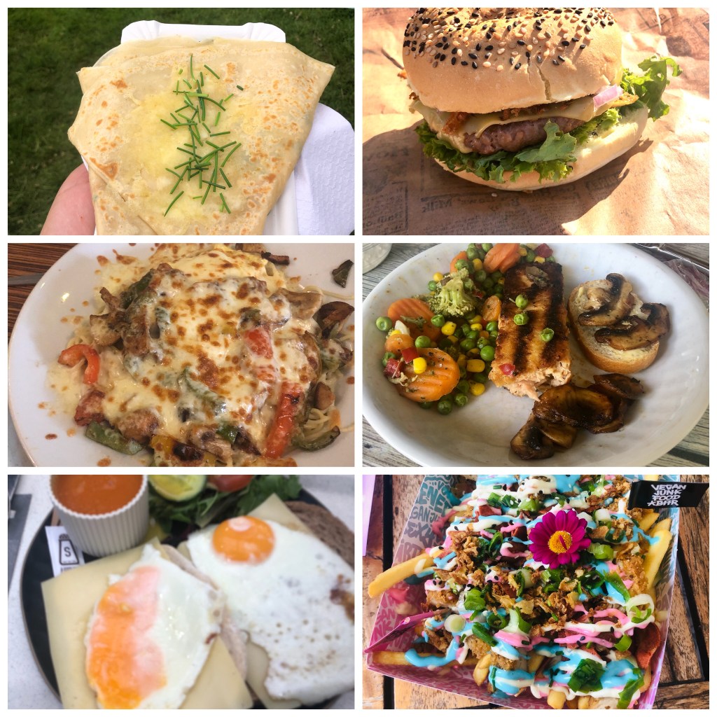 Op het foodtruckfestival at ik een Mexicaanse quesedilla en een vegan roti, allebei heerlijk. En op het andere foodtruckfestival had ik een heerlijk broodje caprese, een vegan cheeseburger en een crêpe. Verder gingen we nog een keer lunchen bij het tuincentrum, aten we twee keer in Duitsland, had ik een heerlijke pizza (mét ananas!) en de barbecue ging aan.