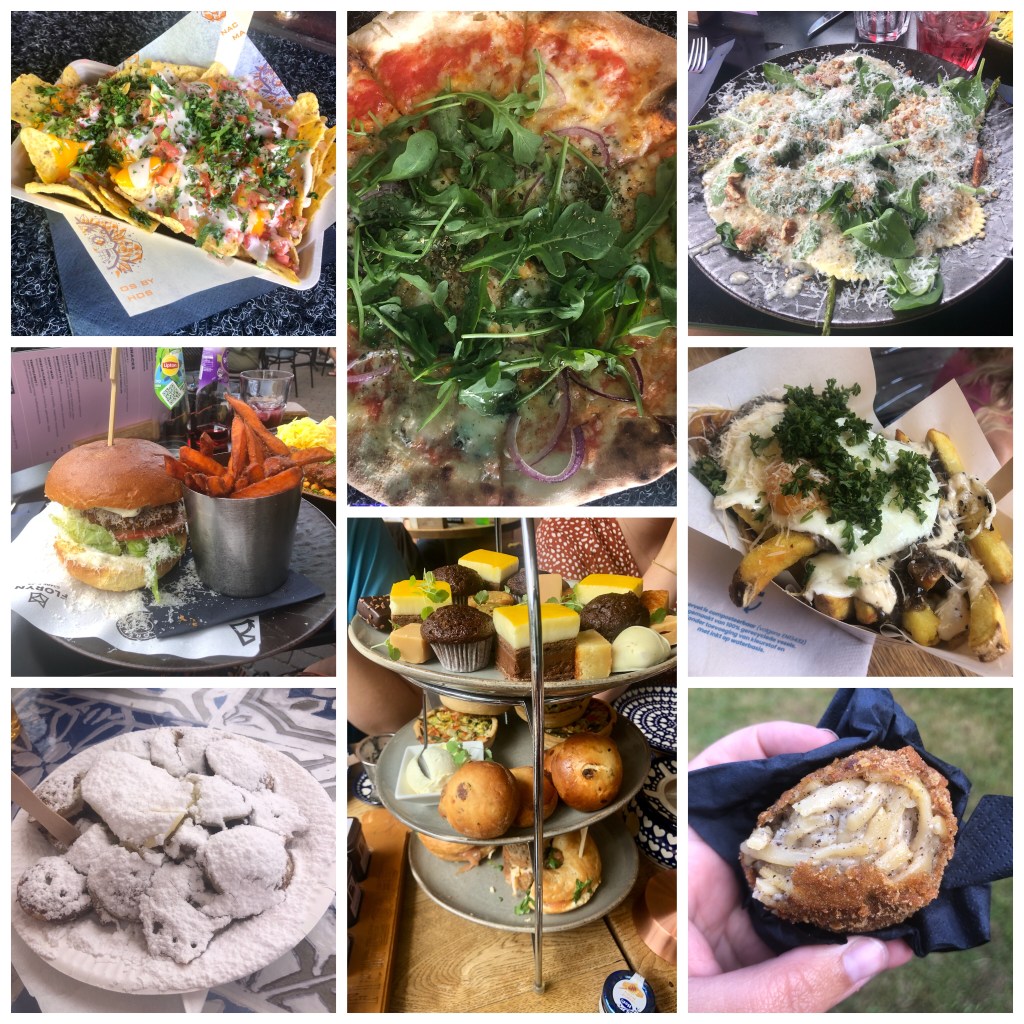 Oke, heel eerlijk: ik heb deze twee weken welgeteld drie dagen zelf avondeten gekookt… Ik begon de vakantie met een foodtruckfestival, en sloot af met een andere. En verder aten we buiten de deur omdat dat nou eenmaal zo uitkwam, langer onderweg dan verwacht bijvoorbeeld. Een patatje van Bram is vaste prik op de Tilburgse kermis, in Uden streken we ook neer op een terrasje, en omdat dat zo goed beviel deden we dat later nog een keer. En bij een saunabezoekje hoort natuurlijk ook eten. Wat ik allemaal at? Ik had net zo goed een hele post kunnen schrijven over het vakantievoer, haha. Hou je vast: pizza, truffelravioli, burgers, broodjes onderweg, een patatje paddenstoelenstoof, gefrituurde spaghetti, nog meer pizza, nacho’s, poffertjes en risotto. Tja, laten we het erop houden dat het niet de meest voedzame twee weken uit mijn leven waren, maar lekker was het wel. Ik heb wel netjes de salade die erbij geserveerd werd opgegeten, tussendoor lekker groente en fruit gegeten en he, een pizza is toch eigenlijk ook een salade, geserveerd op een hele grote crouton?