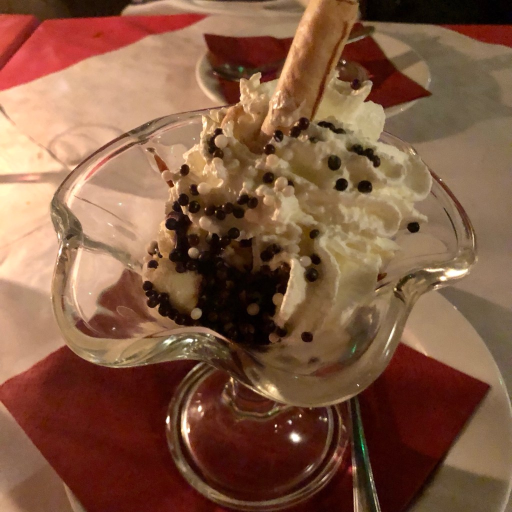 Ruimte voor een bescheiden dessert is er altijd, dus die dame blanche ging er nog wel in. En ook die was erg lekker.