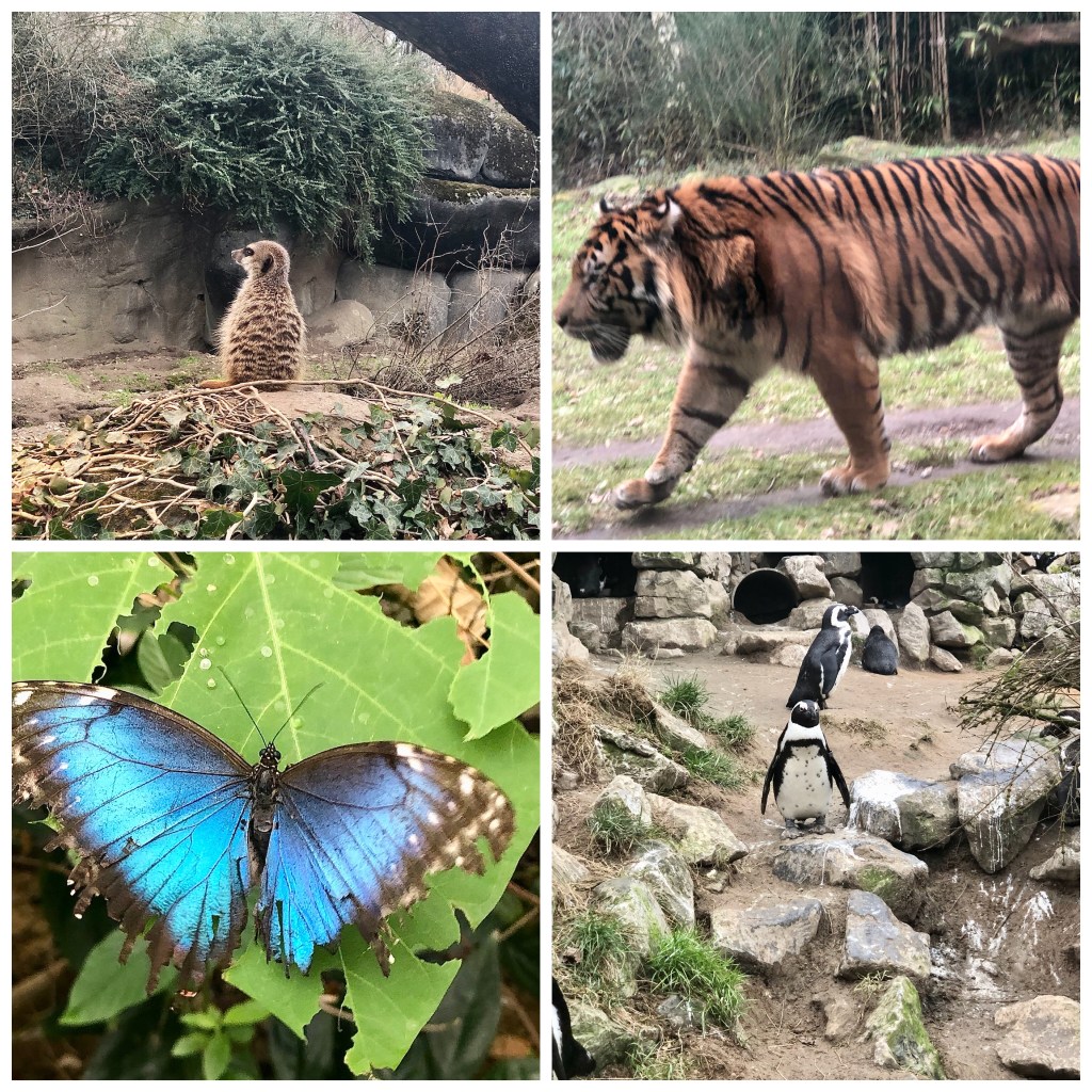 We kwamen natuurlijk niet alleen voor de fabelwezens maar ook voor de echte dieren. Het is al jaren geleden dat ik hier geweest was, maar er was niet veel veranderd. Het blijft een prachtige zoo voor jong en oud. De vlindertuin was nieuw voor me, heel mooi om rond te lopen, maar onmogelijk om goeie foto’s van te maken.