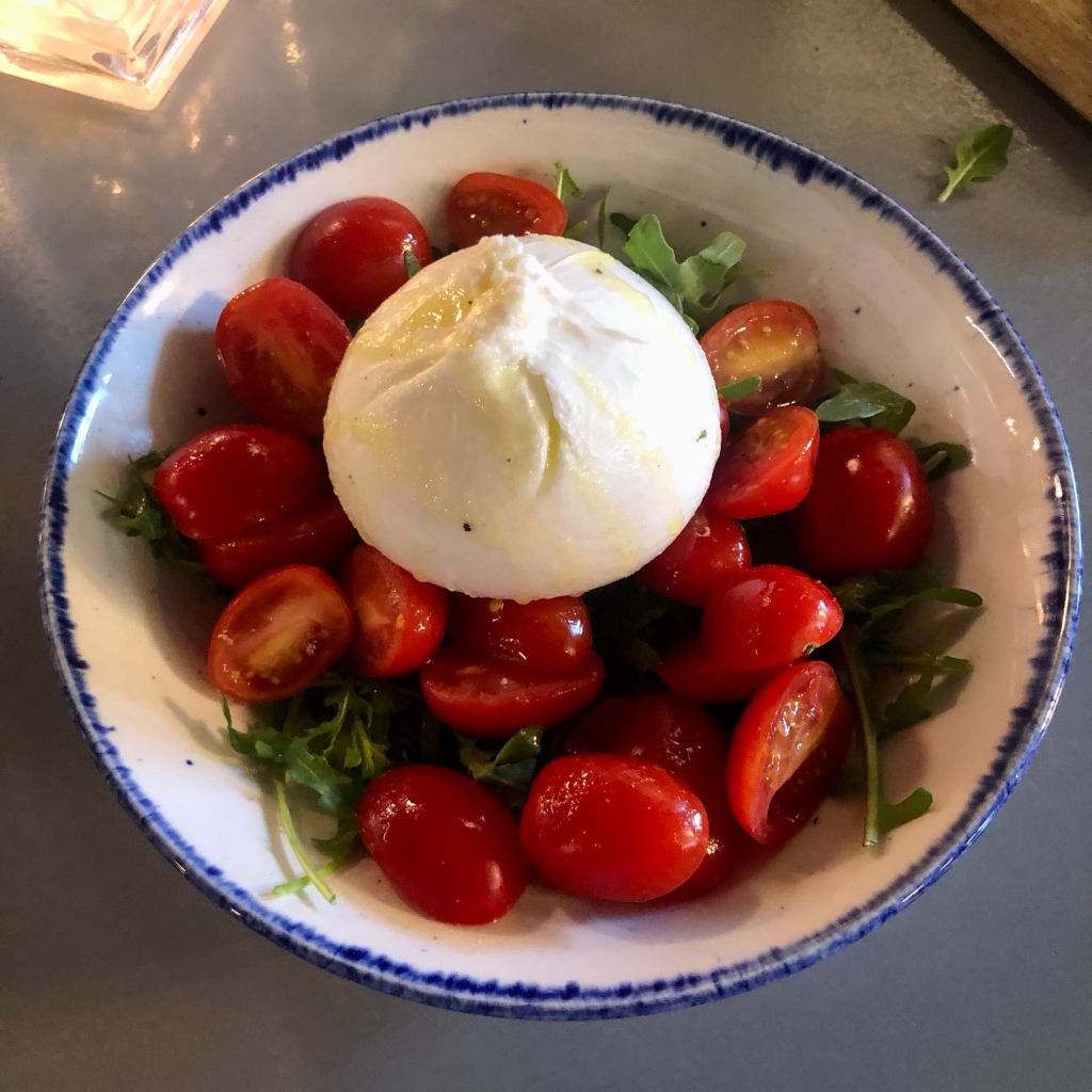 We gingen voor het volledige pakket, een voorgerecht, een hoofdgerecht en een toetje. Als voorgerecht koos ik voor de burrata, iets waar ik al lang nieuwsgierig naar was, maar het was er nog niet eerder van gekomen om het te proberen. En het stelde niet teleur. De burrata was gevuld met pesto, en werd geserveerd met een salade van rucola en cherrytomaatjes. Heerlijk, dit wil ik vaker eten.
