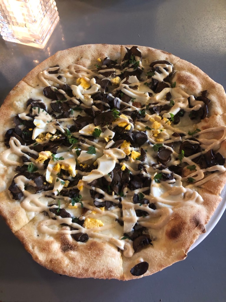 Als hoofdgerecht hadden we natuurlijk pizza. Een vegetarische pizza tartufo voor mij, en een pizza van de maand met wat aanpassingen voor lief. Deden ze ook helemaal niet moeilijk over, die aanpassingen, en er werd goed meegedacht over wat dan wel lekker is.