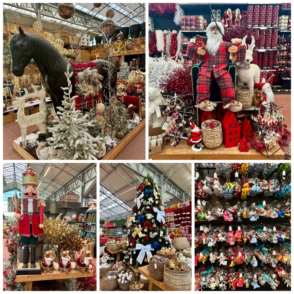 Na het kerstdorp kom je bij de rest van de kerstafdeling. Ik had het idee dat ze hier nog niet helemaal klaar waren. Er stonden in vergelijking met andere tuincentra maar weinig kerstbomen opgebouwd, en er stonden nog best veel dozen die nog niet uitgepakt waren. Het oogde een beetje rommelig, maar wat er stond was alvast mooi om te zien.