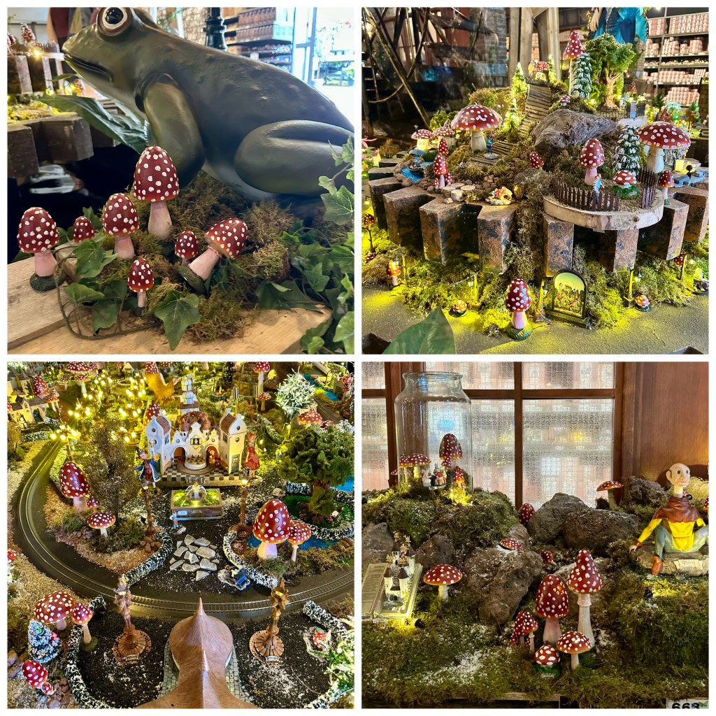 … En nog meer sprookjesachtige taferelen. Het thema dit jaar is ‘Woud der verwondering’, en dat zie je zeker terug in de kerstafdeling. Welke kleuren je het meest terugziet in deze kerstshow? Alles! Er is echt voor iedereen wel iets te vinden hier.