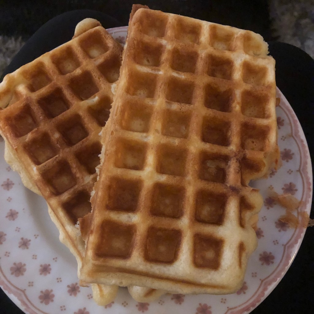 Als ik wafels maak dan zijn dat meestal zoete, maar ik had nog een klein stukje brie dat op moest en twijfels of ik zin had in iets zoets of iets hartigs. En de combinatie van wafels en brie bleek erg goed te werken.