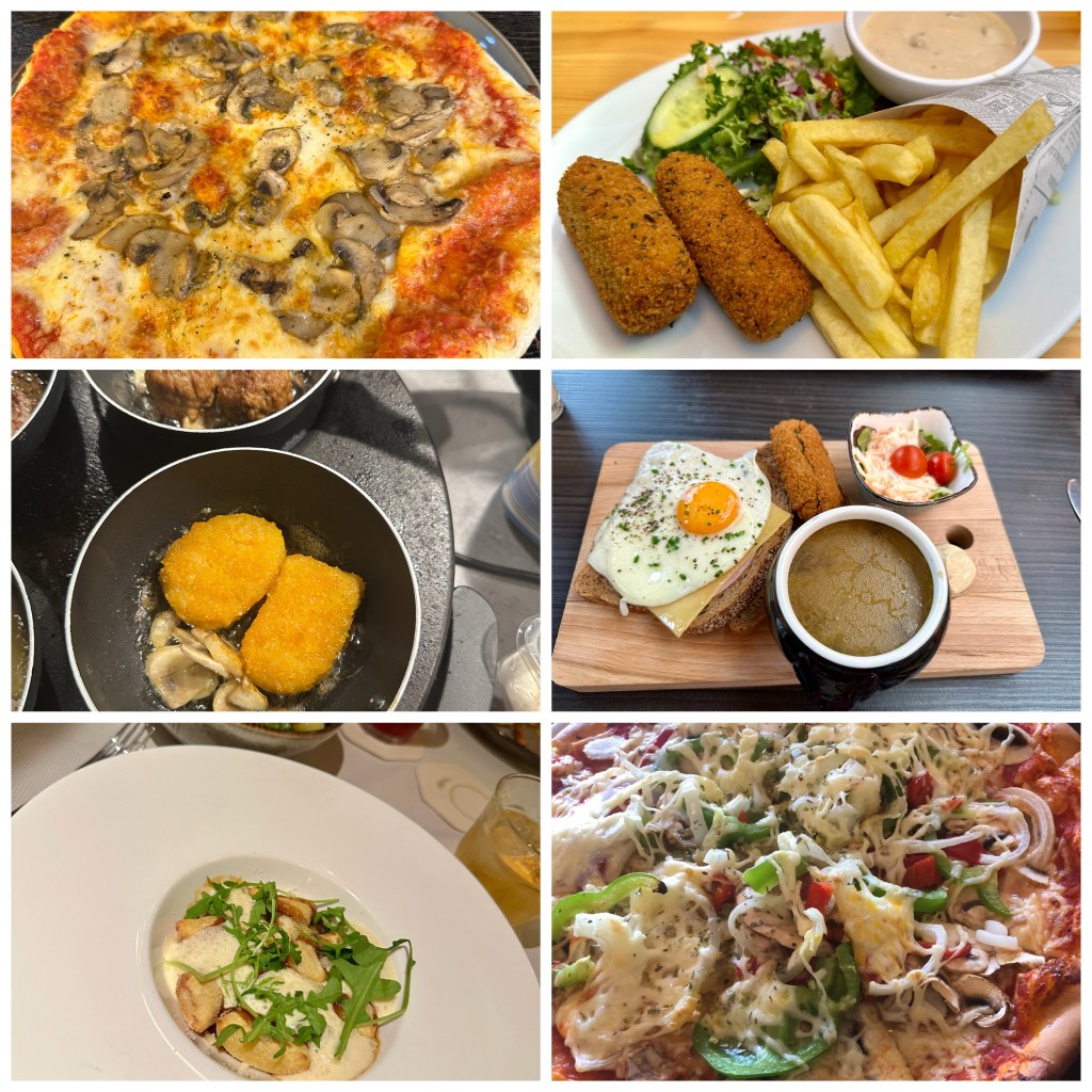 Op lekker eten bezuinigen we niet, en zeker niet tijdens de vakantie. We hebben pannenkoeken gebakken en het gourmetstel aangeslingerd in het huisje, maar we aten ook heerlijke pizza (twee keer), gnocchi met een enorme ‘side salad’ in Valkenburg en lekkere lunches op verschillende plekken. En natuurlijk mocht warme chocolademelk met slagroom niet ontbreken.
