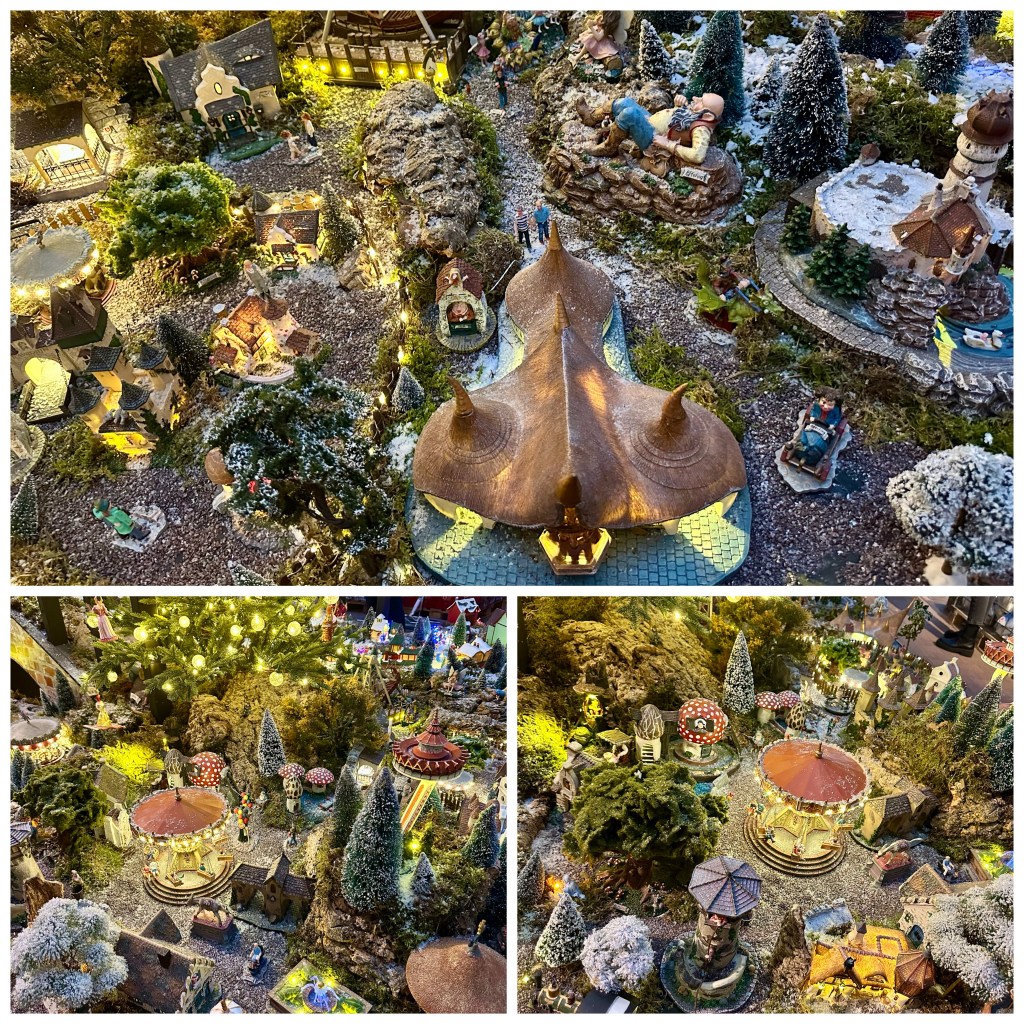 Eindelijk weer een kerstdorp wat niet afgeschermd was. Het bruggetje was alleen voor de sier, helaas kon je er niet overheen lopen. Maar ze hebben een mooi dorp opgezet.