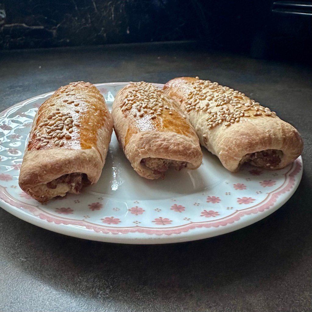 Worstenbroodjes stonden al heel lang op mijn lijstje om een keer te maken. En nu we in de geredde kerstpakketten een paar pakjes worstenbroodmix hebben gevonden werd die drempel wel heel laag. De vegetarische vulling was ook een succes, dus ik deel graag wat ik erin stopte.