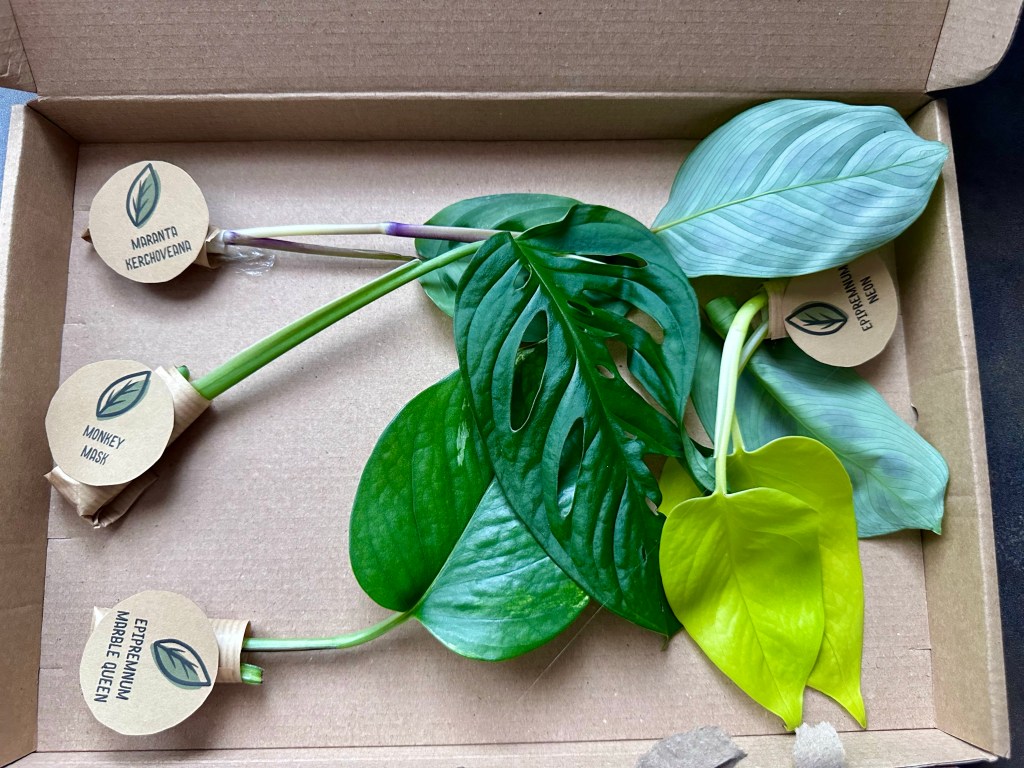 Bij de Stekfabriek kun je dus ook een stekjesbox bestellen, een brievenbusdoosje met stekjes van verschillende kamerplanten. Je kan verschillende stekjes, en ook accessoires om ze zo goed mogelijk te laten groeien, bestellen. Er zijn vooraf samengestelde boxen of je kunt je eigen stekjes uitkiezen.