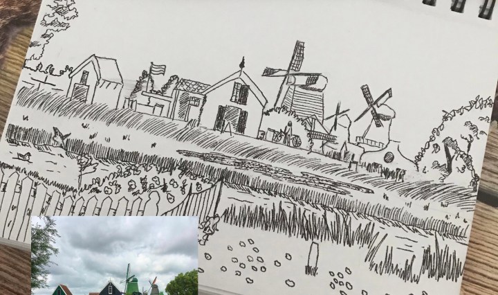 In augustus pakte ik mijn tekenspullen er weer een paar keer bij, en ik maakte er genoeg voor een verzamelblog.